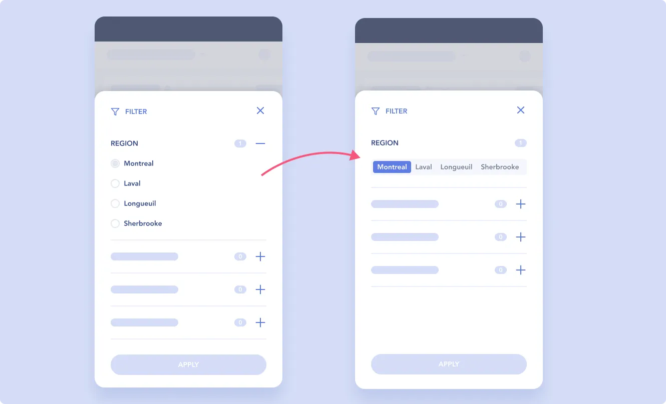 Limit the number of dropdowns. If a filter has 2 or 3 standardized options, check if you couldn’t instead display it as a switcher/picker.