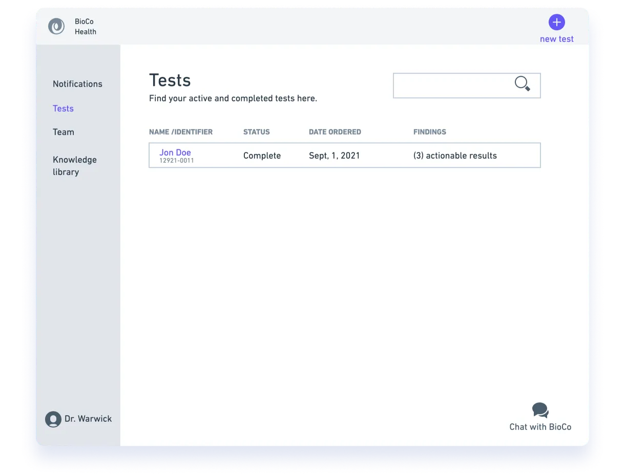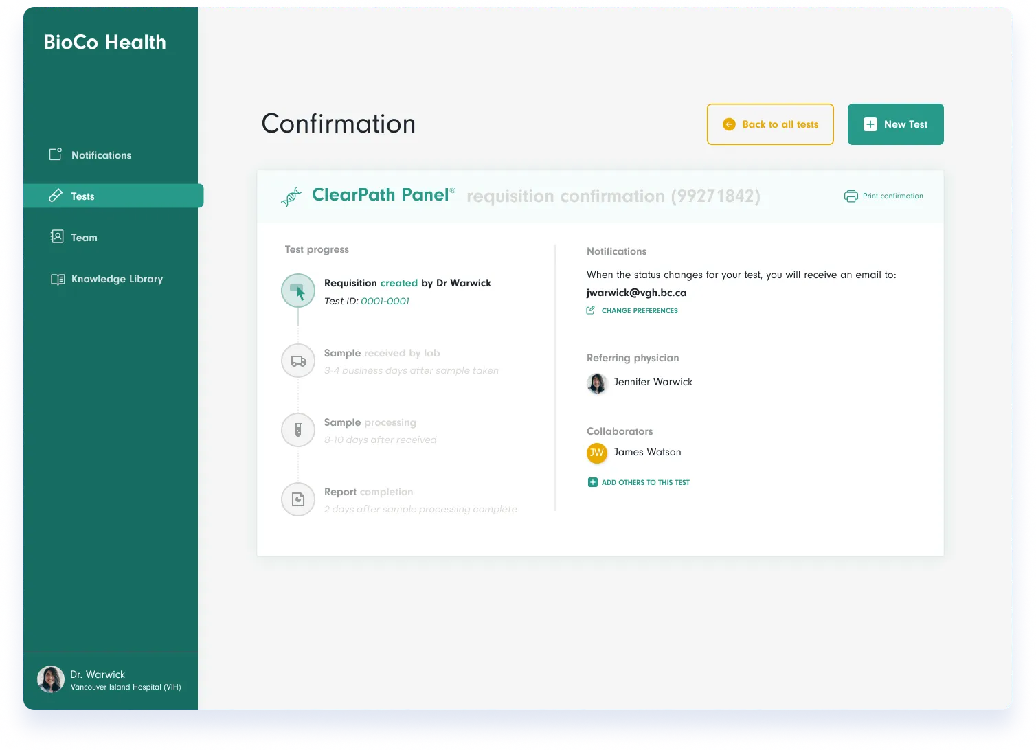 Your team is replacing the analog process the company already has where the doctor prints off a test requisition form and physically gives it to their patient to take with them to a testing centre, which then gets sent to a lab. The lab will fax results to doctors, but the turnaround time and logistics are not transparent.