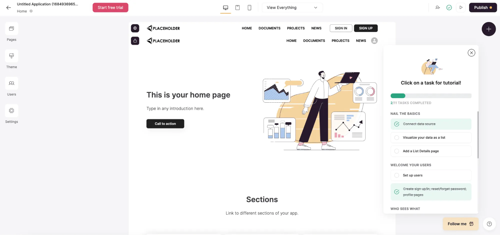 6) And you’re in! Note the UI here, and see how the onboarding continues with mini tutorials for different tasks.