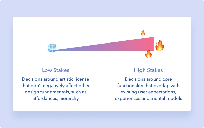 Not all real world concepts and metaphors should be weighed the same when making decisions around your design. A lower risk decision would be choosing to what level of skeuomorphic design versus flat design your brand expression is willing to go. As long as affordances are clear and users aren’t confused about where interactivity lies, there’s an element of artistic license to be had.